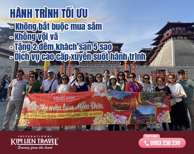 Đón xuân 2026, hãy cùng hành trình của Kim Lien Travel khám phá tour 5 ngày 4 đêm “Tây An – Lạc Dương mùa mẫu đơn nở”, kết hợp 3 Di sản Thế giới UNESCO, mùa hoa lễ hội truyền thống và trải nghiệm văn hoá sống động – nơi cổ kính và hiện đại giao hòa giữa những bông hoa rực