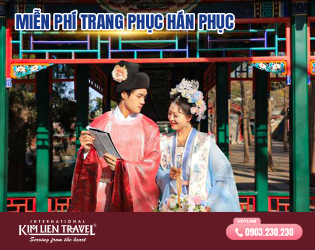- Miễn phí trang phục Hán phục – chụp ảnh tại Đại Đường Bất Dạ Thành, hoặc tham gia lễ hội đèn hoa (Theo đăng kí lần lượt vì công ty có chuẩn bị sẵn 5 bộ cho đoàn). Nếu không đủ vì cùng lúc quý khách vui lòng chờ hoặc tự thuê tại điểm.