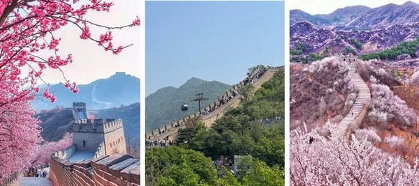- Vạn Lý Trường Thành: Cung Bát Đạt Lĩnh, một trong những đoạn Trường Thành được khai phá sớm nhất, đồng thời cung đường dễ đi và có cáp treo (chi phí tự túc). Vào mùa xuân, Bát Đạt Lĩnh trăm hoa đưa sắc cùng núi non hùng vĩ, mùa hè ánh nắng chiếu rọi check in rất chill và cảm nhận núi non xanh mướt một màu, mùa thu ngân hạnh nởi rộ.
